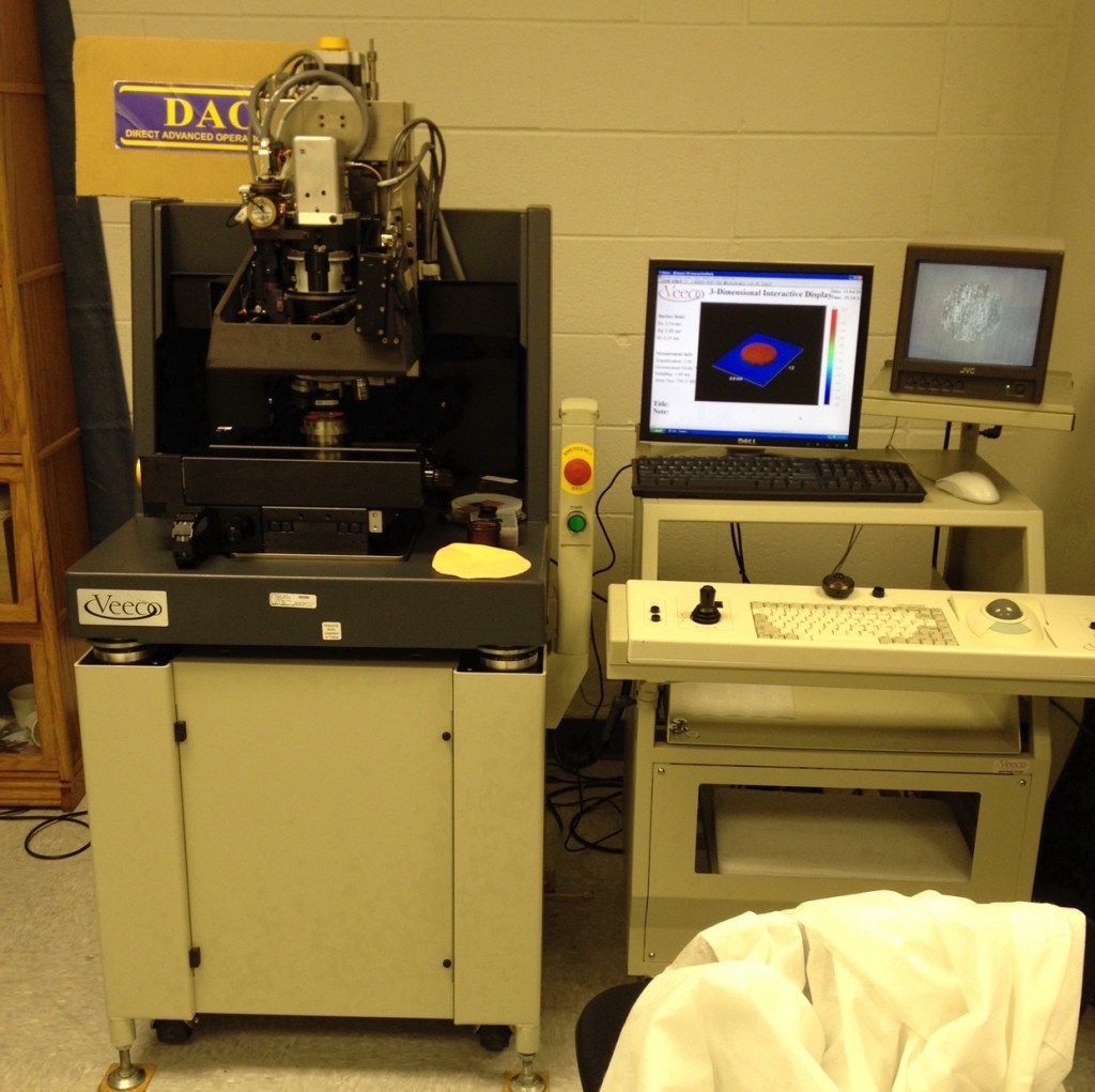 The Dektak 150 is a surface profiler with a 150mm (6-inch) maximum sample size, a 55mm scan length, and a vertical resolution of 1 Ångström (10-1010 to the negative 10 power m) at its best. It uses a contact stylus to measure surface roughness and step heights, with a vertical range of up to 524…